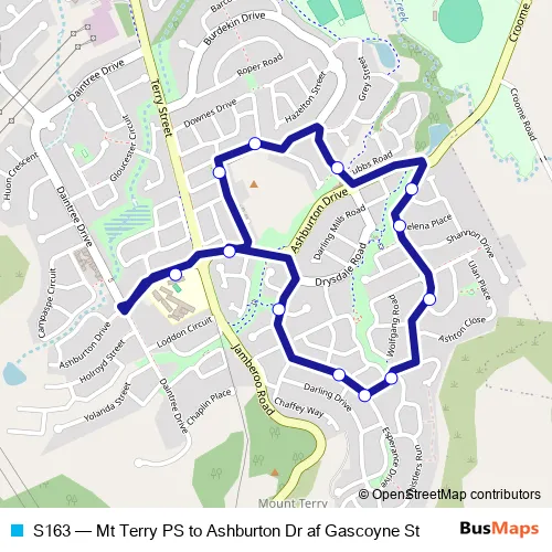 Click here to view the nearest S163 - Mt Terry PS to Ashburton Dr af Gascoyne St bus stop.