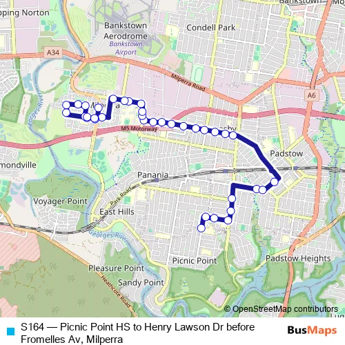 Click here to view the nearest S164 - Picnic Point HS to Henry Lawson Dr before Fromelles Av, Milperra bus stop.