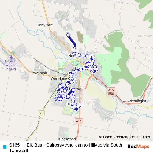 Click here to view the nearest S165 - Elk Bus - Calrossy Anglican to Hillvue via South Tamworth bus stop.