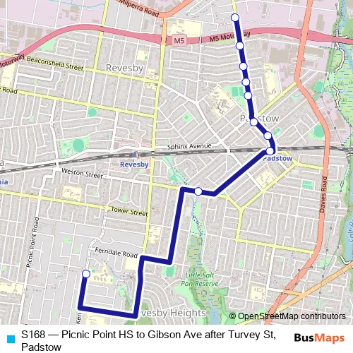 Click here to view the nearest S168 - Picnic Point HS to Gibson Ave after Turvey St, Padstow bus stop.