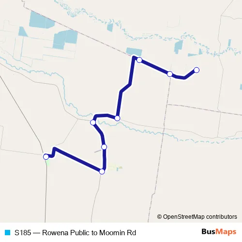 The first stop of the S185 bus route is Alma Property, Moomin Rd and the last stop is Rowena Public School, Shaw St. S185 (Rowena Public to Moomin Rd) is operational during entre semana.