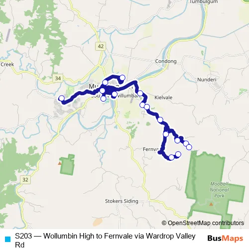 Click here to view the nearest S203 - Wollumbin High to Fernvale via Wardrop Valley Rd bus stop.