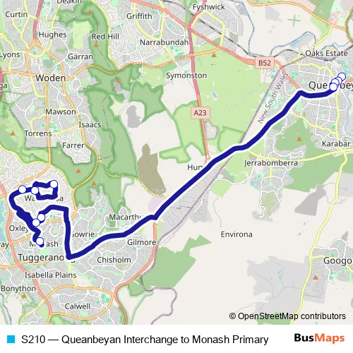 Click here to view the nearest S210 - Queanbeyan Interchange to Monash Primary bus stop.