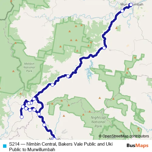 Click here to view the nearest S214 - Nimbin Central, Bakers Vale Public and Uki Public to Murwillumbah bus stop.