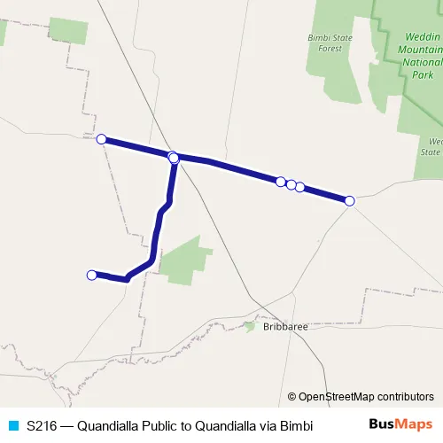 Click here to view the nearest S216 - Quandialla Public to Quandialla via Bimbi bus stop.