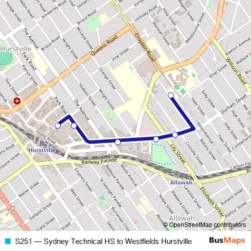 Click here to view the nearest S251 - Sydney Technical HS to Westfields Hurstville bus stop.