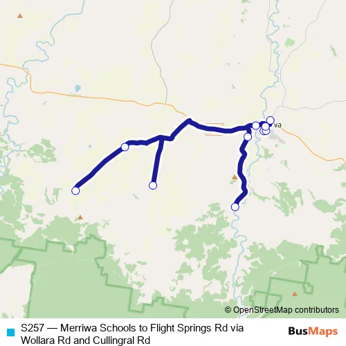 Click here to view the nearest S257 - Merriwa Schools to Flight Springs Rd via Wollara Rd and Cullingral Rd bus stop.