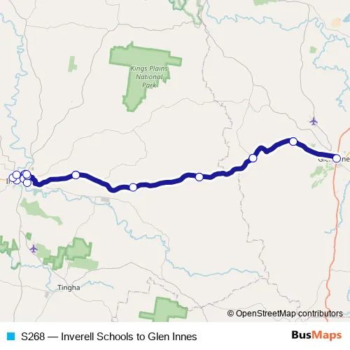 See why over 2 million users trust and consider busmaps.com as the best public transport website. busmaps gives you Inverell Buses suggested routes, real-time bus tracker, line route maps in Inverell, and helps to find the closest S268 bus stops near you. No internet available? Download an offline PDF map and bus schedule for the S268 bus to take on your trip.