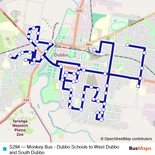Click here to view the nearest S294 - Monkey Bus - Dubbo Schools to West Dubbo and South Dubbo bus stop.
