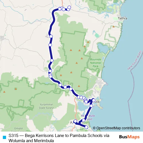 Click here to view the nearest S315 - Bega Kerrisons Lane to Pambula Schools via Wolumla and Merimbula bus stop.