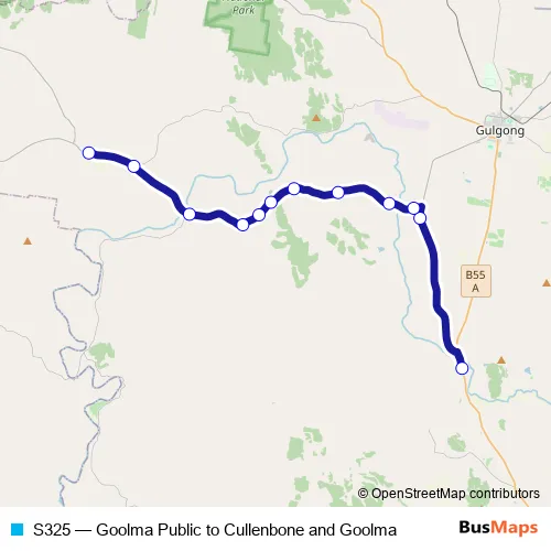 Click here to view the nearest S325 - Goolma Public to Cullenbone and Goolma bus stop.