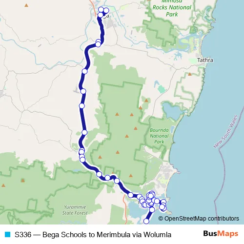 Click here to view the nearest S336 - Bega Schools to Merimbula via Wolumla bus stop.