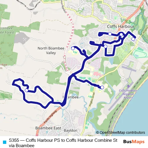 Bus S355 - Coffs Harbour PS to Coffs Harbour Combine St via Boambee: Full Schedule in Coffs Harbour