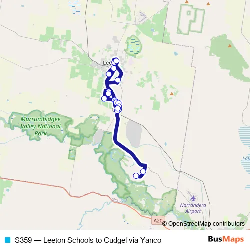 Bus S359 - Leeton Schools to Cudgel via Yanco: Full Schedule in Yanco