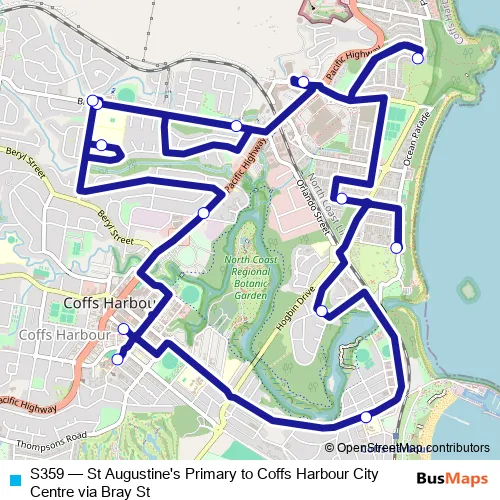 Click here to view the nearest S359 - St Augustine's Primary to Coffs Harbour City Centre via Bray St bus stop.