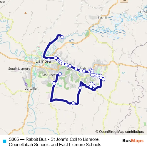 Click here to view the nearest S365 - Rabbit Bus - St John's Coll to Lismore, Goonellabah Schools and East Lismore Schools bus stop.