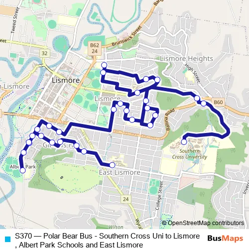Bus S370 - Polar Bear Bus - Southern Cross Uni to Lismore, Albert Park Schools and East Lismore in Lismore: Stops & Timetable