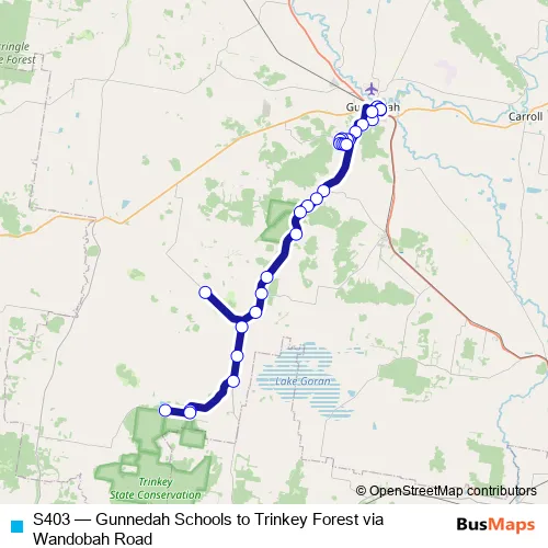 Bus S403 - Gunnedah Schools to Trinkey Forest via Wandobah Road in Gunnedah: Stops & Timetable