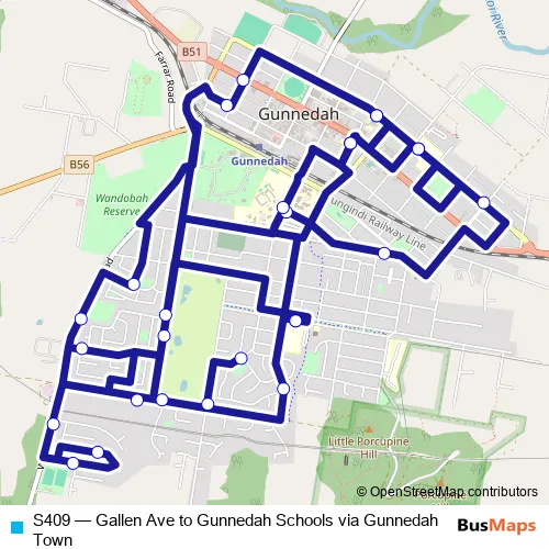See why over 2 million users trust and consider busmaps.com as the best public transport website. busmaps gives you Gunnedah Buses suggested routes, real-time bus tracker, line route maps in Gunnedah, and helps to find the closest S409 bus stops near you. No internet available? Download an offline PDF map and bus schedule for the S409 bus to take on your trip.