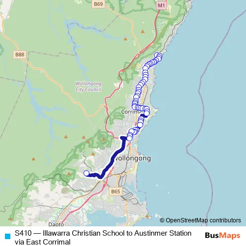 Click here to view the nearest S410 - Illawarra Christian School to Austinmer Station via East Corrimal bus stop.