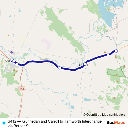 S412 Bus - Gunnedah and Carroll to Tamworth Interchange via Barber St