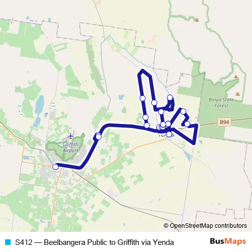 Click here to view the nearest S412 - Beelbangera Public to Griffith via Yenda bus stop.