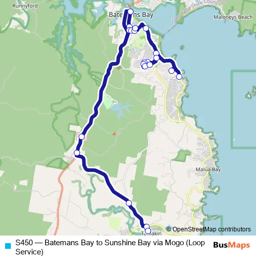 Bus S450 - Batemans Bay to Sunshine Bay via Mogo (Loop Service) in Batemans Bay: Stops & Timetable