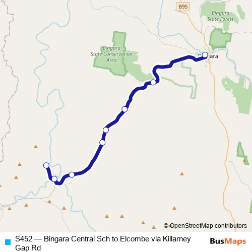 The first stop of the S452 bus route is Caroda Rd Opp Roxburgh Property and the last stop is Bingara Central School, Riddell St. S452 (Bingara Central Sch to Elcombe via Killarney Gap Rd) is operational during entre semana.
