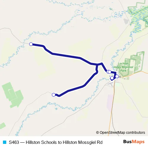 The first stop of the S463 bus route is 2028 Mossgiel Rd and the last stop is Hillston Central School, Moore St. S463 (Hillston Schools to Hillston Mossgiel Rd) is operational during entre semana.