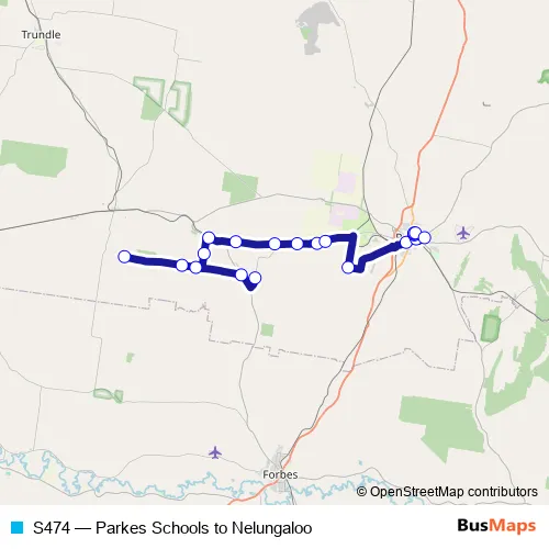 Click here to view the nearest S474 - Parkes Schools to Nelungaloo bus stop.