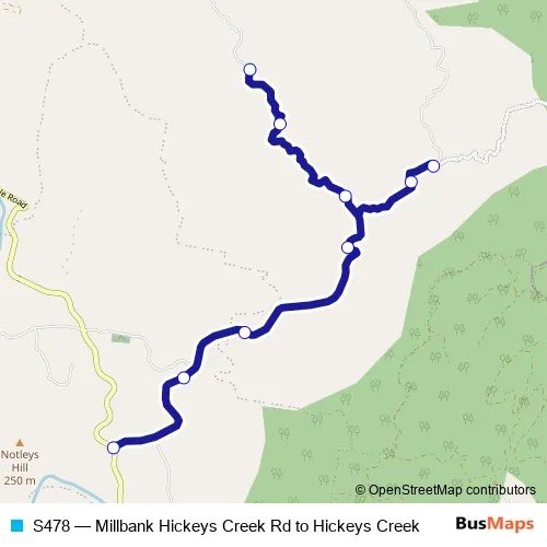 The first stop of the S478 bus route is 838 Hickeys Creek Rd and the last stop is Hickeys Creek Rd At Armidale Rd. S478 (Millbank Hickeys Creek Rd to Hickeys Creek) is operational during entre semana.