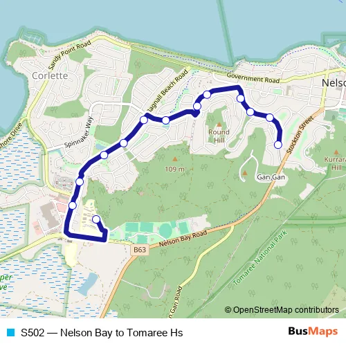 Click here to view the nearest S502 - Nelson Bay to Tomaree Hs bus stop.