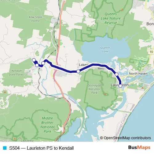 Click here to view the nearest S504 - Laurieton PS to Kendall bus stop.