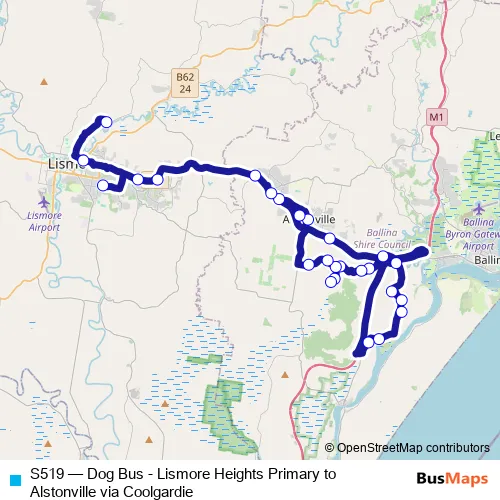 Click here to view the nearest S519 - Dog Bus - Lismore Heights Primary to Alstonville via Coolgardie bus stop.