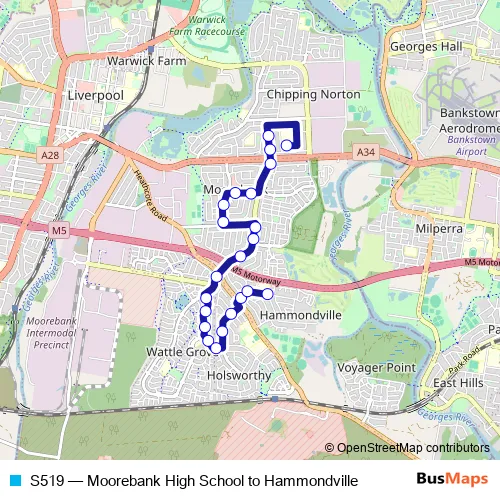 Bus S519 - Moorebank High School to Hammondville in Liverpool: Stops & Timetable