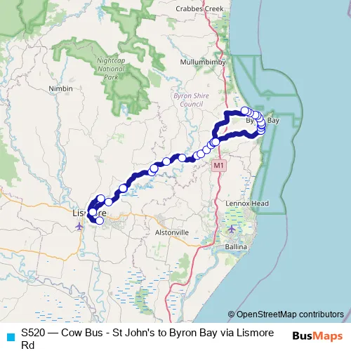 Click here to view the nearest S520 - Cow Bus - St John's to Byron Bay via Lismore Rd bus stop.