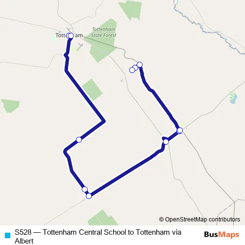 The first stop of the S528 bus route is 123 Strudwicks Rd and the last stop is Tottenham Central School, Merilba St. S528 (Tottenham Central School to Tottenham via Albert) is operational during entre semana.