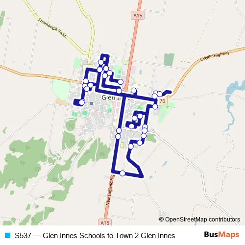 Click here to view the nearest S537 - Glen Innes Schools to Town 2 Glen Innes bus stop.