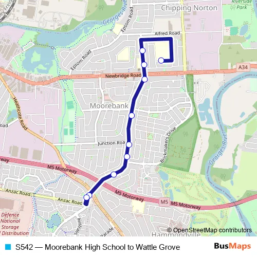 Click here to view the nearest S542 - Moorebank High School to Wattle Grove bus stop.