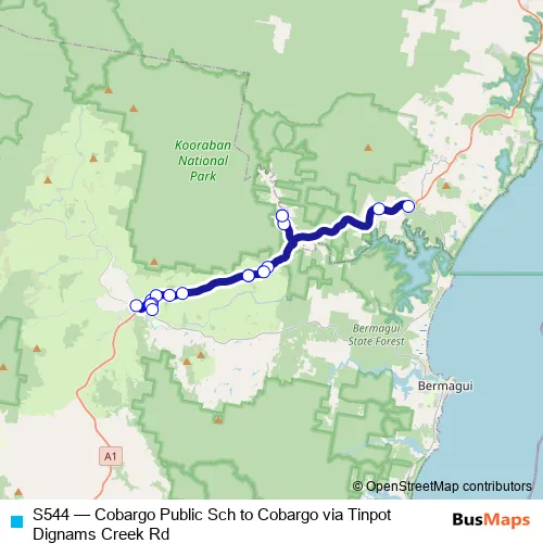 Click here to view the nearest S544 - Cobargo Public Sch to Cobargo via Tinpot Dignams Creek Rd bus stop.