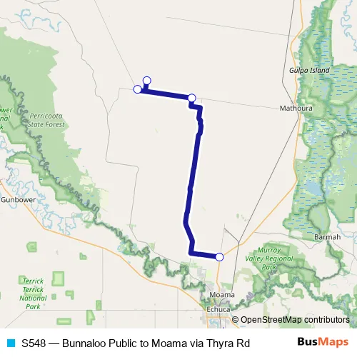 Click here to view the nearest S548 - Bunnaloo Public to Moama via Thyra Rd bus stop.