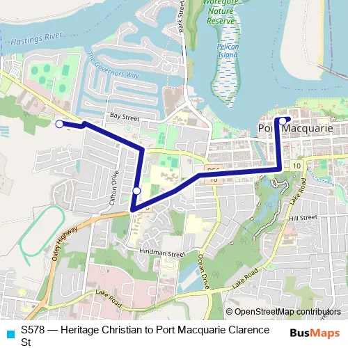 Click here to view the nearest S578 - Heritage Christian to Port Macquarie Clarence St bus stop.