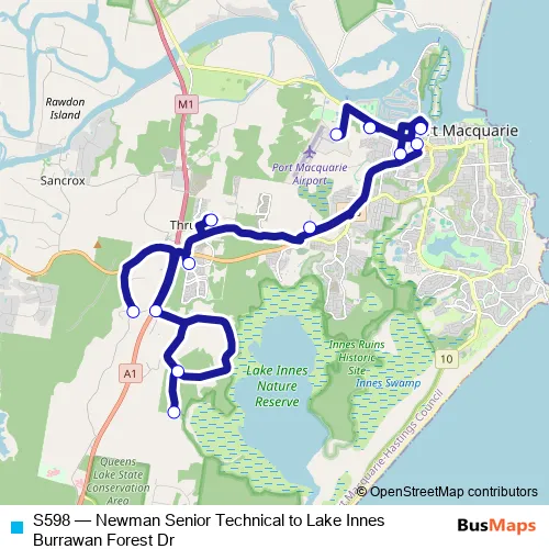 Click here to view the nearest S598 - Newman Senior Technical to Lake Innes Burrawan Forest Dr bus stop.