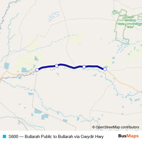 Bus S600 - Bullarah Public to Bullarah via Gwydir Hwy: Full Schedule in Bullarah