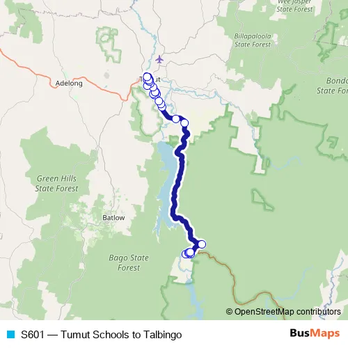 Click here to view the nearest S601 - Tumut Schools to Talbingo bus stop.