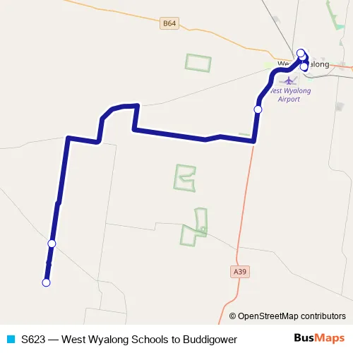 Click here to view the nearest S623 - West Wyalong Schools to Buddigower bus stop.