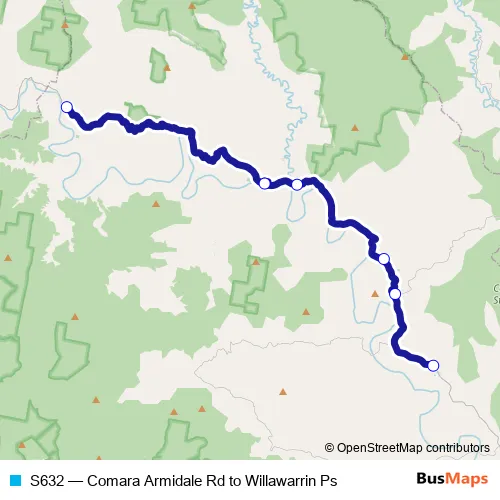 Services on the S632 - Comara Armidale Rd to Willawarrin Ps bus stop at 08:55 on lunes, martes, miércoles, jueves, viernes.