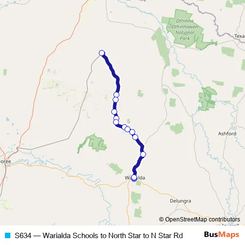 Click here to view the nearest S634 - Warialda Schools to North Star to N Star Rd bus stop.