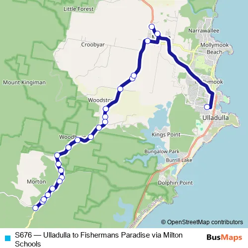 Click here to view the nearest S676 - Ulladulla to Fishermans Paradise via Milton Schools bus stop.