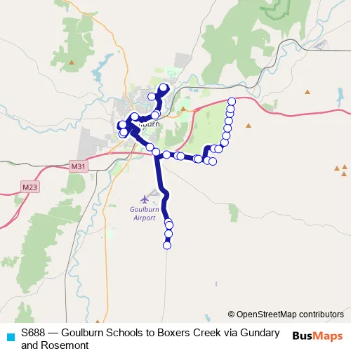 Click here to view the nearest S688 - Goulburn Schools to Boxers Creek via Gundary and Rosemont bus stop.
